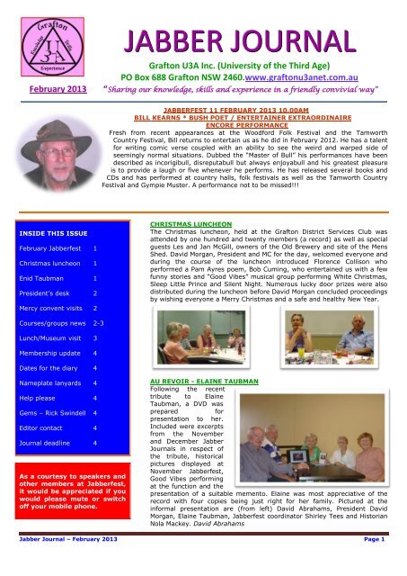 Carole Cairns. Carole Cairns. Associated charities. Legal name, Town/Suburb, State, Status, Size, ABN. Grafton U3A Incorporated, Grafton, NSW, Registered, Small ...