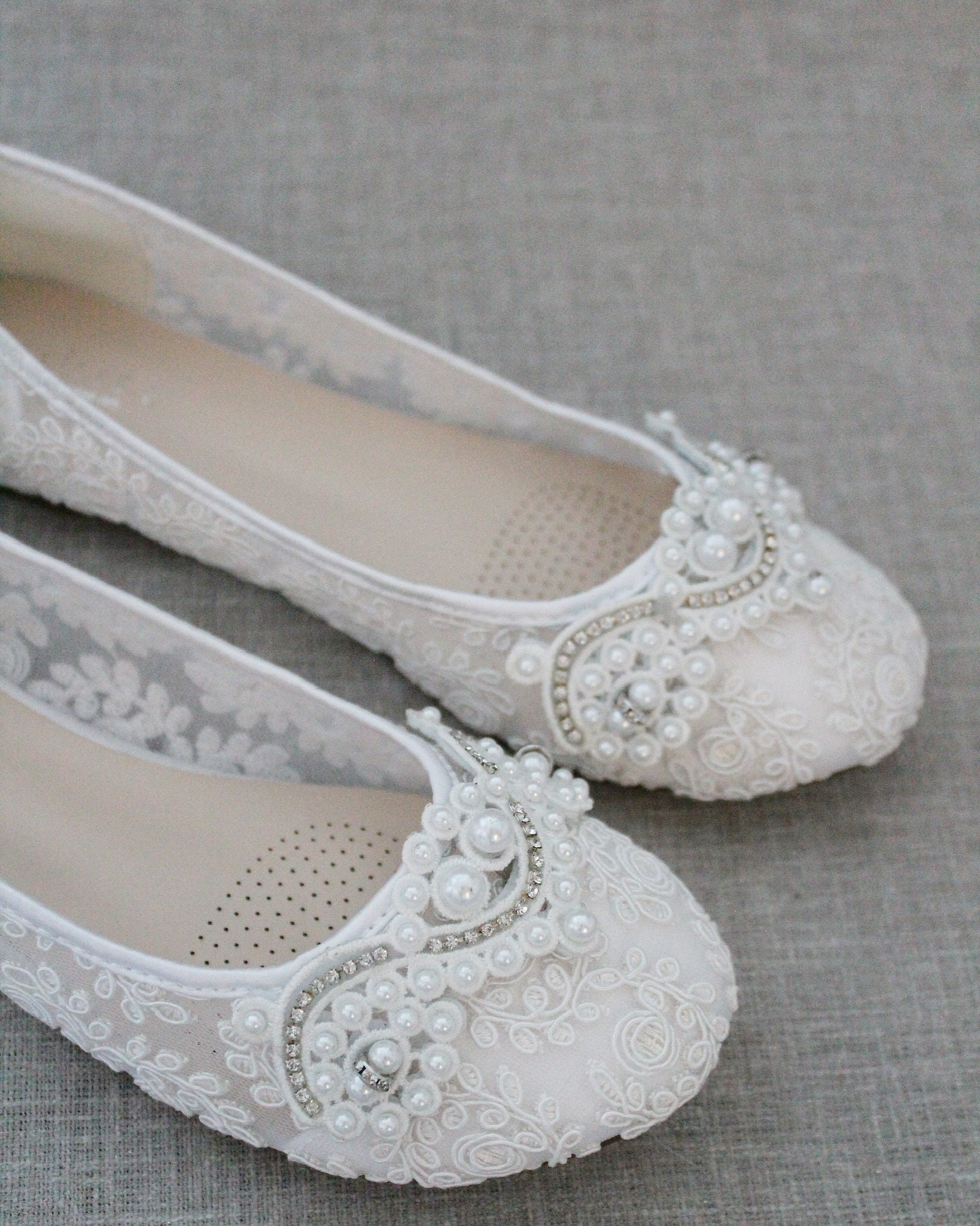 White Crochet Lace Round Toe Flats With SMALL PEARLS ... - Etsy