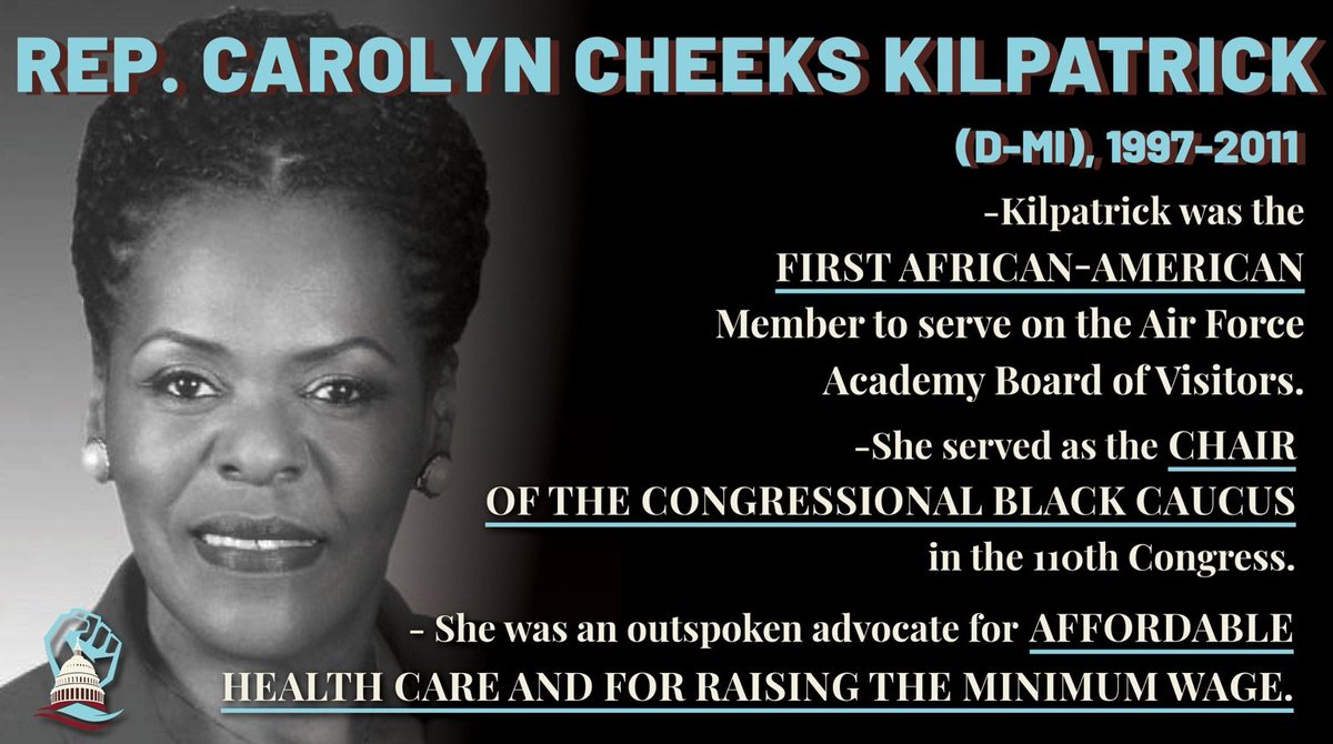 Congresswoman Carolyn Cheeks Kilpatrick represented Michigan in the US House of Representatives from 1997 to 2011 (105th-111th Congresses).