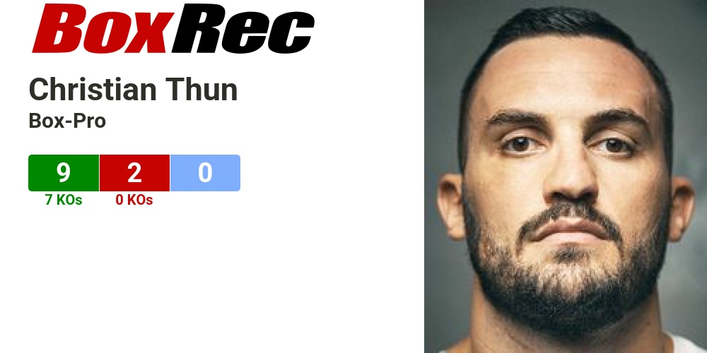 Christian Thun ; KOs, 77.78% ; career, 2018-2024 ; debut, 2018-03-02 ; ID#, 825272 ; birth name, Christian Alfred Thun.