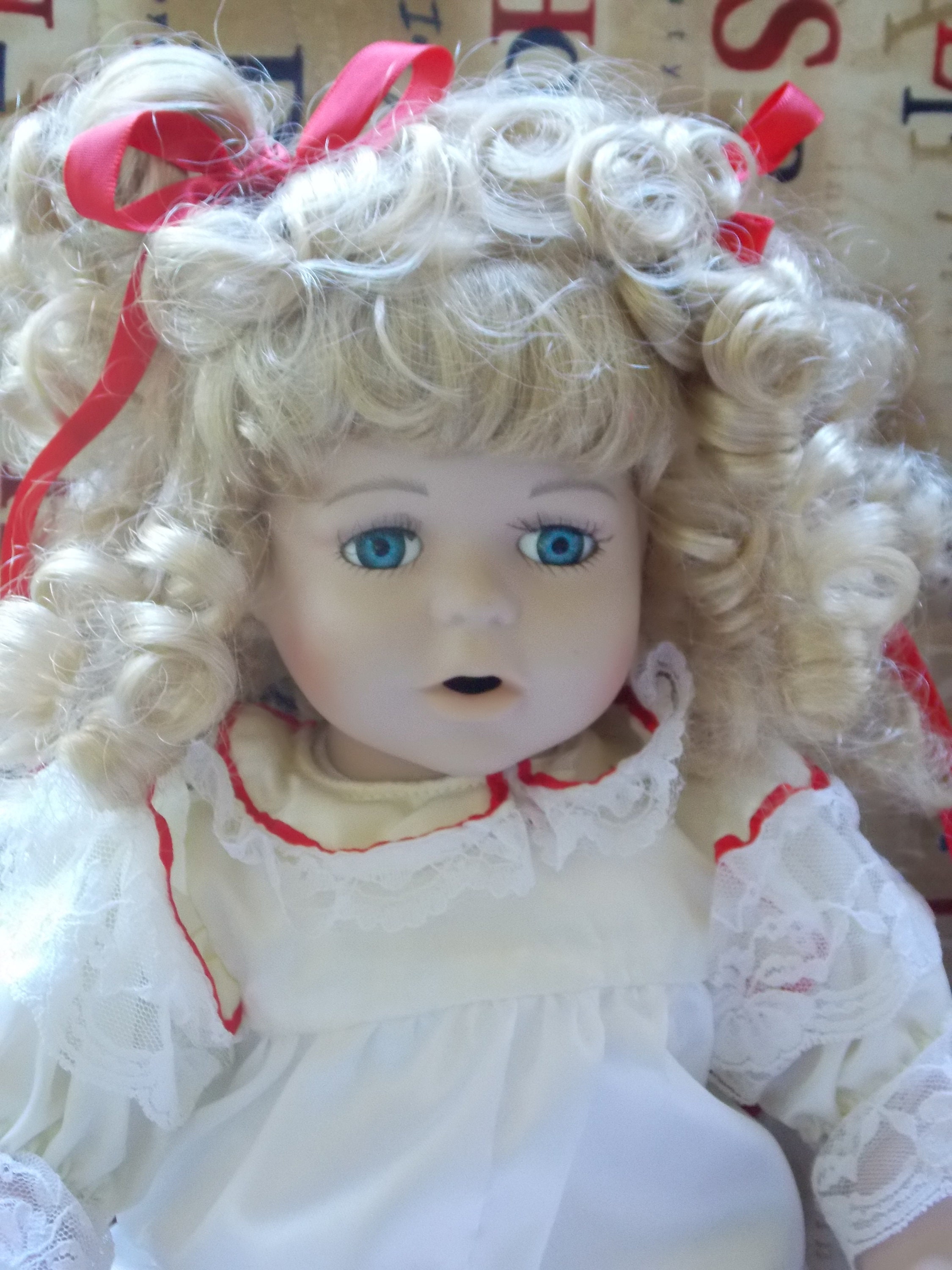 This beautiful doll was made from a pattern. The pattern was designed by Christine Shively in the 90's. The pattern is no longer for sell on her website.