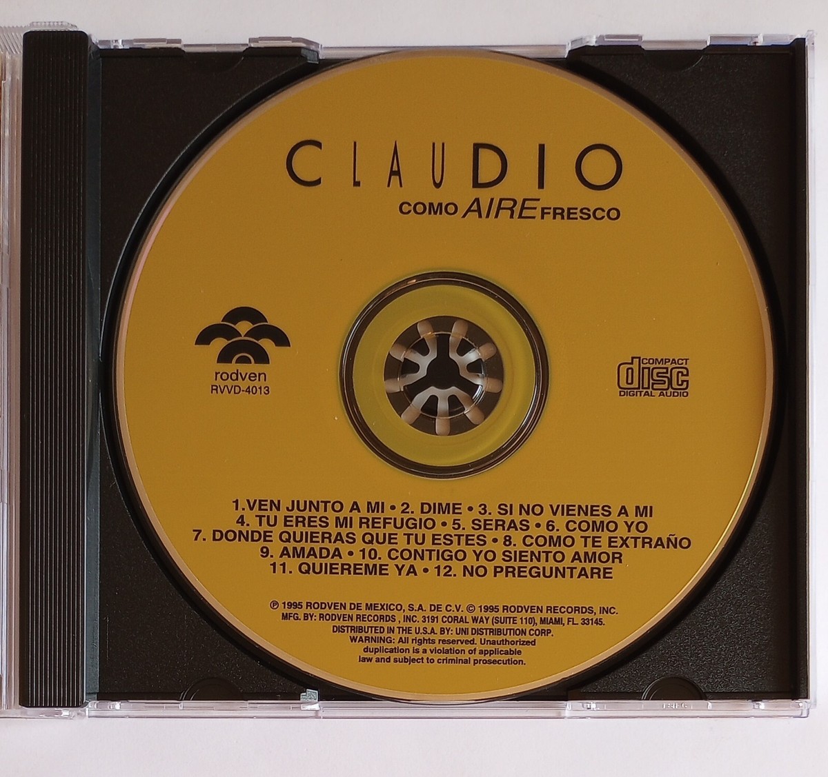 Claudio Bermudez "Como Aire Fresco" NEW Sealed CD - Rodven 1994 (Timbiriche) · 1. Ven Junto A Mi · 2. Dime · 3. Si No Vienes A Mi · 4. Tu Eres Mi Refugio · 5. Seras.