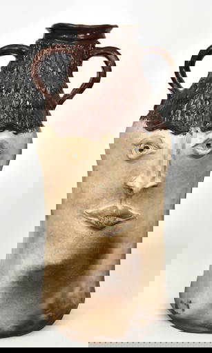 Clete Meaders Double Face Jug 1995 ; Start price: $100 ; Estimated price: $200 - $600 ; Buyer's premium: 24%.