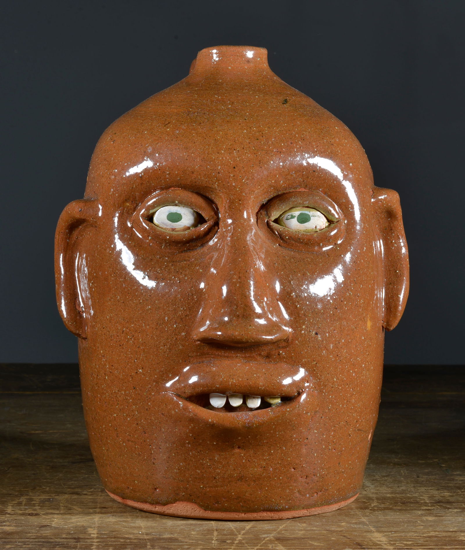 Bid on Clete Meaders Georgia Stoneware Bust sold at auction by Brunk Auctions 1241 on 5th December (Hoschton, Jackson County, Georgia, 1995) runny green ash ...
