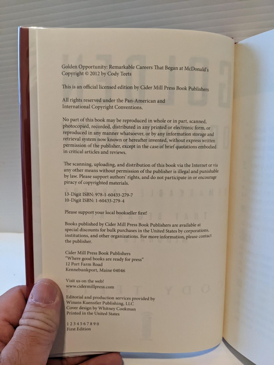 Golden Opportunity : Remarkable Careers That Began at Mcdonald's by Cody Teets (2012, Hardcover) ; Returns. Accepted within 30 days. Buyer pays return shipping.