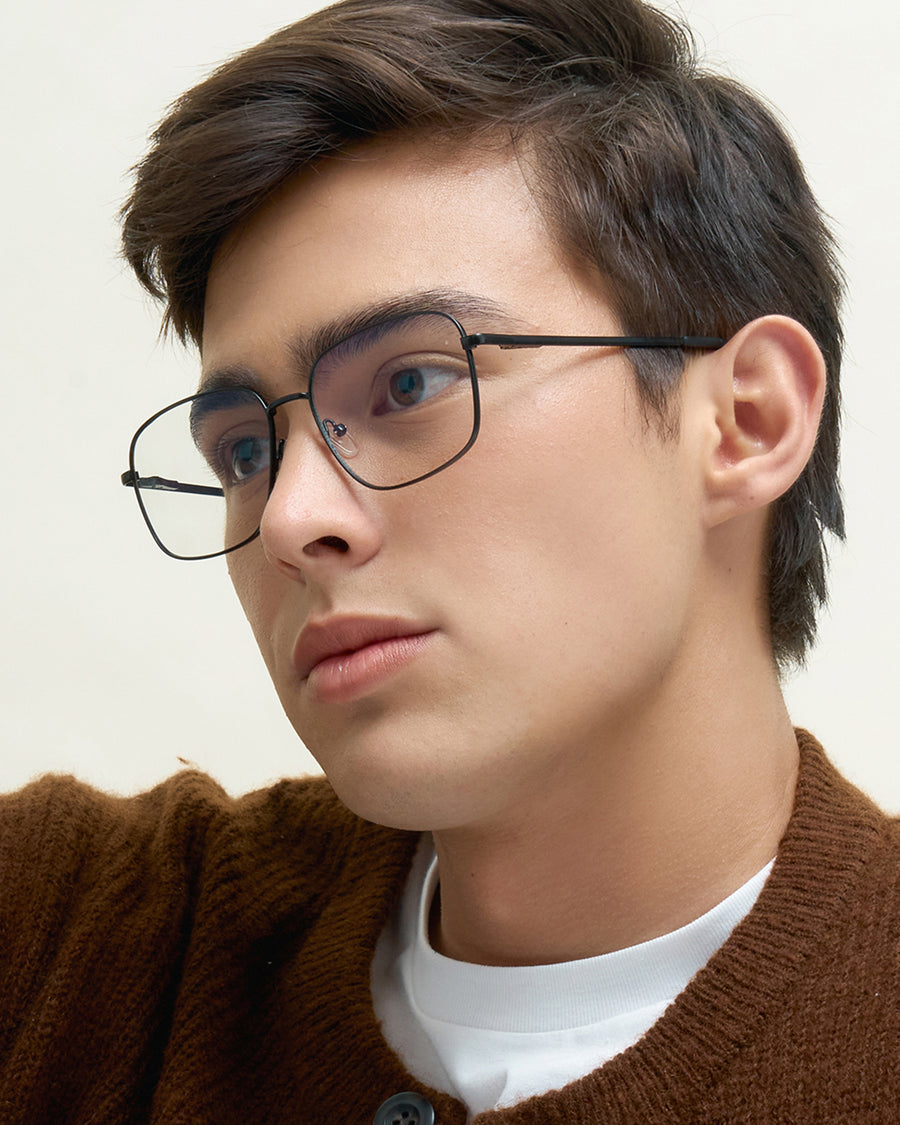 Oscar Wylee's Cole frame is a men's, rectangle glasses frame that is perfect for wide faces and those with round and oval face shapes.
