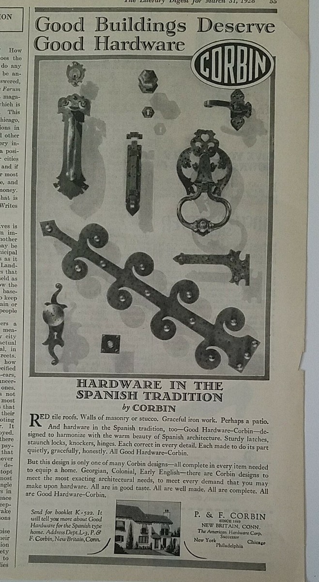Amazon.com: RelicPaper 1930 Corbin: Good Hardware for Cottages As Well As Castles, P & F Corbin Print Ad: Posters & Prints.