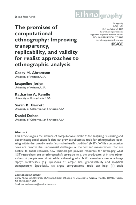 corey.abramson@rice.edu, Department of Sociology, MS- 28 Rice University, P.O. Box 1892, Houston, TX 77005. Open Access Policy: RSF: The ...