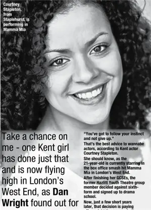 Courtney Stapleton. Currently appearing in Dear Evan Hansen. Represented by Bloomfields Welch Management. Trained at Arts Educational Schools London.