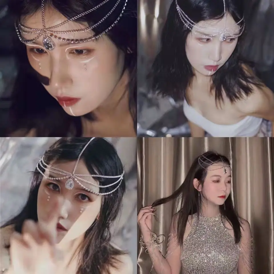 ACEDRE Rhinestone Head Chain - Silver Crystal Forehead ...