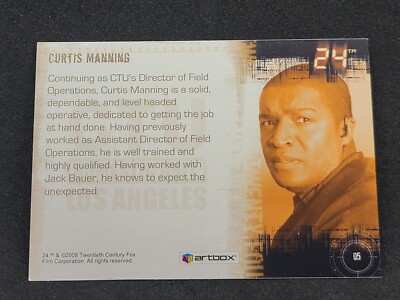 Curtis Manning is a CTU field agent working with CTU and Jack Bauer at points in seasons 4, 5 and 6.