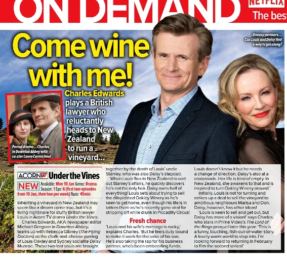 When Sydney socialite Daisy Munroe (Rebecca Gibney, Winter) and London lawyer Louis Oakley (Charles Edwards, The Crown) inherit a New Zealand vineyard, ...