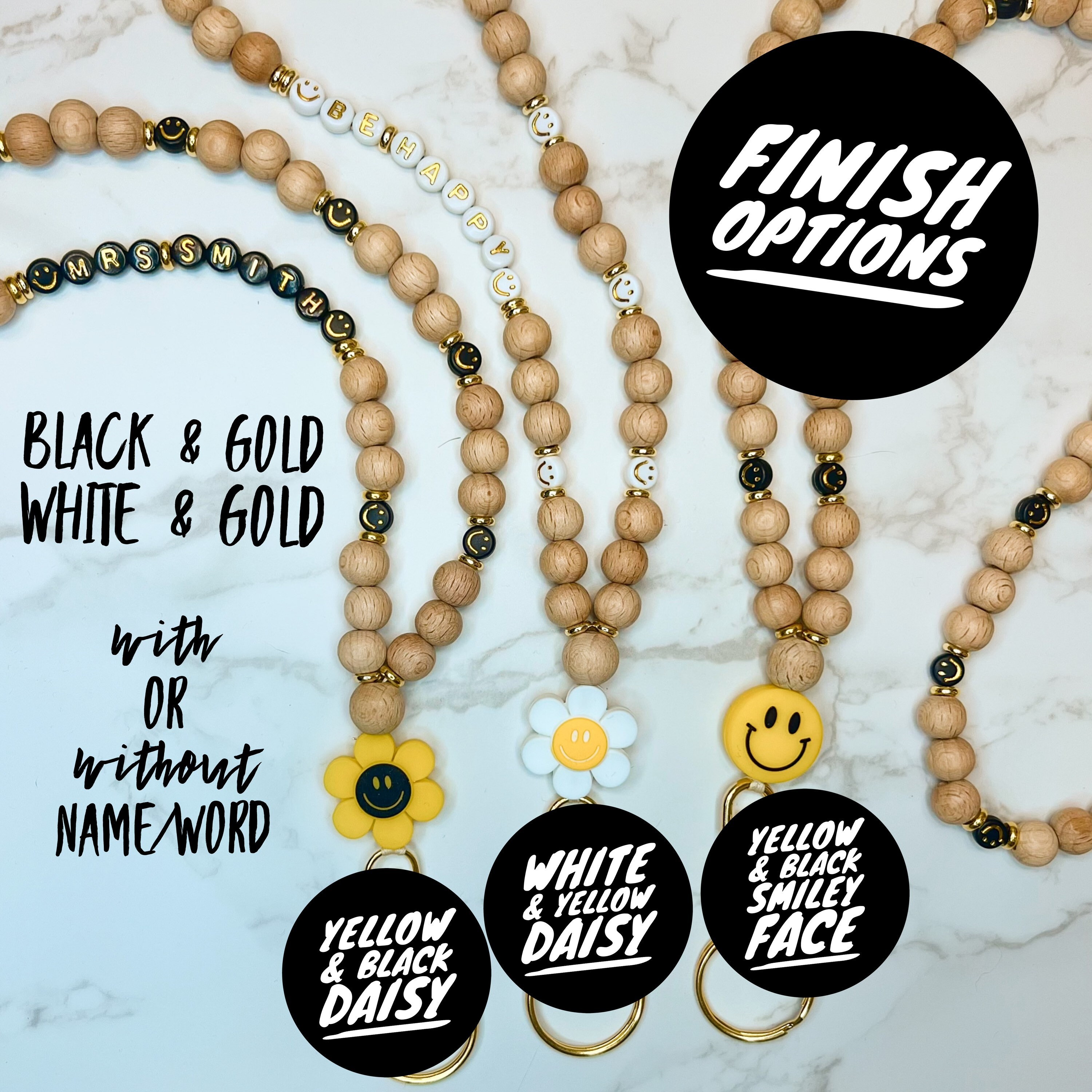 Daisy Smiley key fob wristlet - Wishing Notes Store