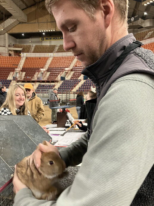 Dan Saunier picked up a squirming Netherland dwarf rabbit and ran his hands over the chocolate brown body, feeling for a heavy bone structure, rounded ...