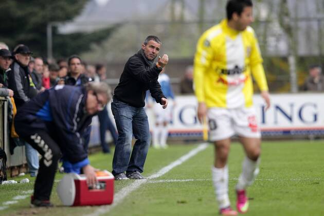Dan Theis (Trainer Jeunesse Esch) diskutiert mit Schiedsrichter Frank Bourgnon Fussball BGL Ligue 6. Spieltag, Saison 2013-2014 22.09.2013 Jeune.