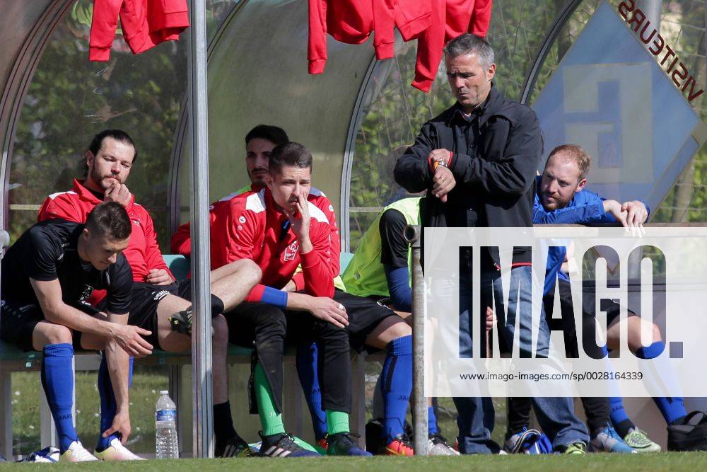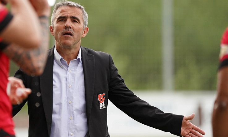 Dan Theis (Trainer Jeunesse Esch) diskutiert mit Schiedsrichter ...