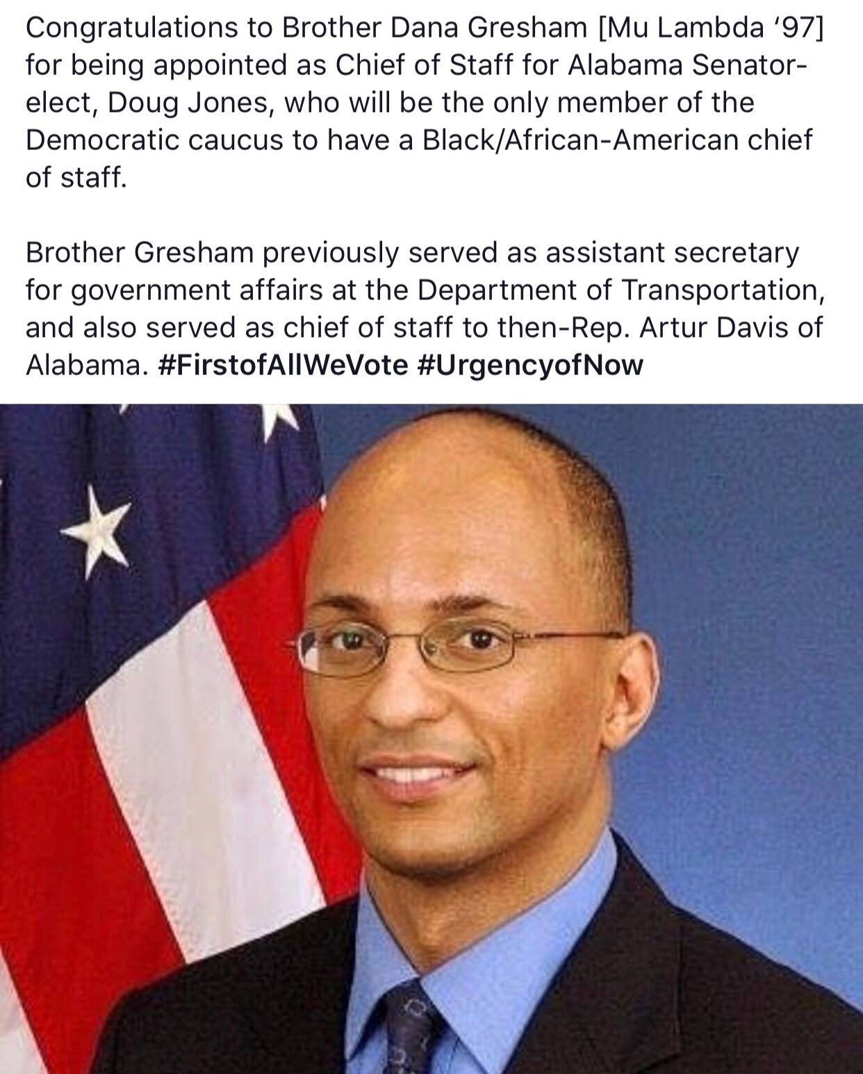 Dana Gresham Named Chief of Staff for Newly-Sworn in U.S. Senator Doug Jones. By goodblacknews on January 4, 2018. PHOTO: Dana Gresham was named on Jan. 2 ...