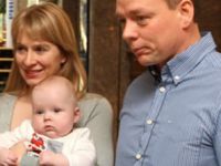 Lt. Col Daniel Arneson receives commander's pin from his wife, Heather, after becoming the new commander of the 728th Airlift Squadron.