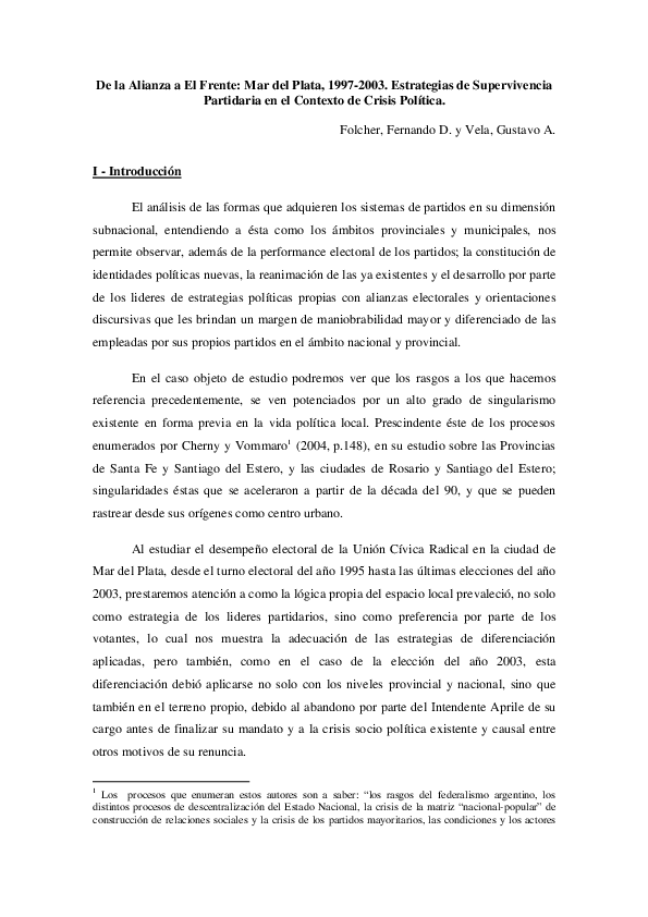 Fernando Daniel Folcher, Universidad Nacional de Mar del Plata: 78 Followers, 102 Following, 2 Research papers. Research interests: Political Science, ...
