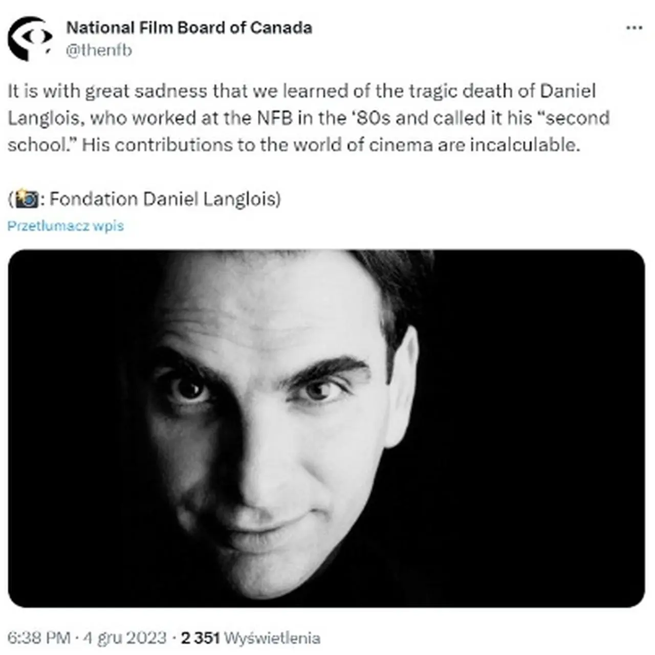 Daniel Langlois, a visionary in digital technologies and cinema, has left us. His company Softimage created 3D images for films like @StarWars, leaving a lasting impact on generations.