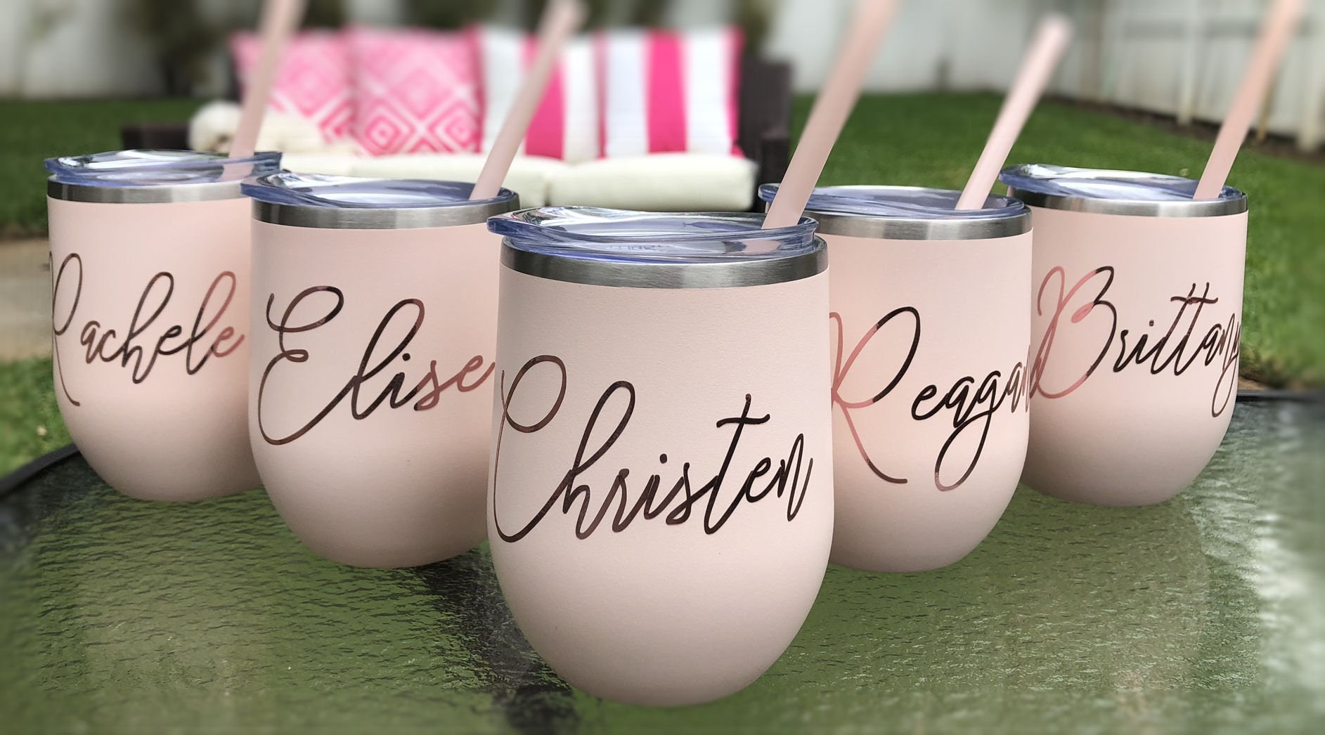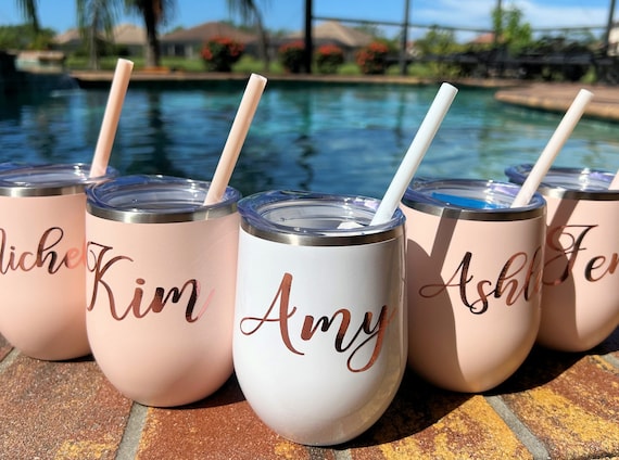 Matte Blush Wine Tumbler With Straw Personalized Tumbler ... - Etsy