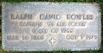 Dave Bowles. Ralph David Bowles. Captain Ralph D. Bowles, Class of 1968, was killed on 7 October, 1975 when the F-111A aircraft he was piloting crashed ...