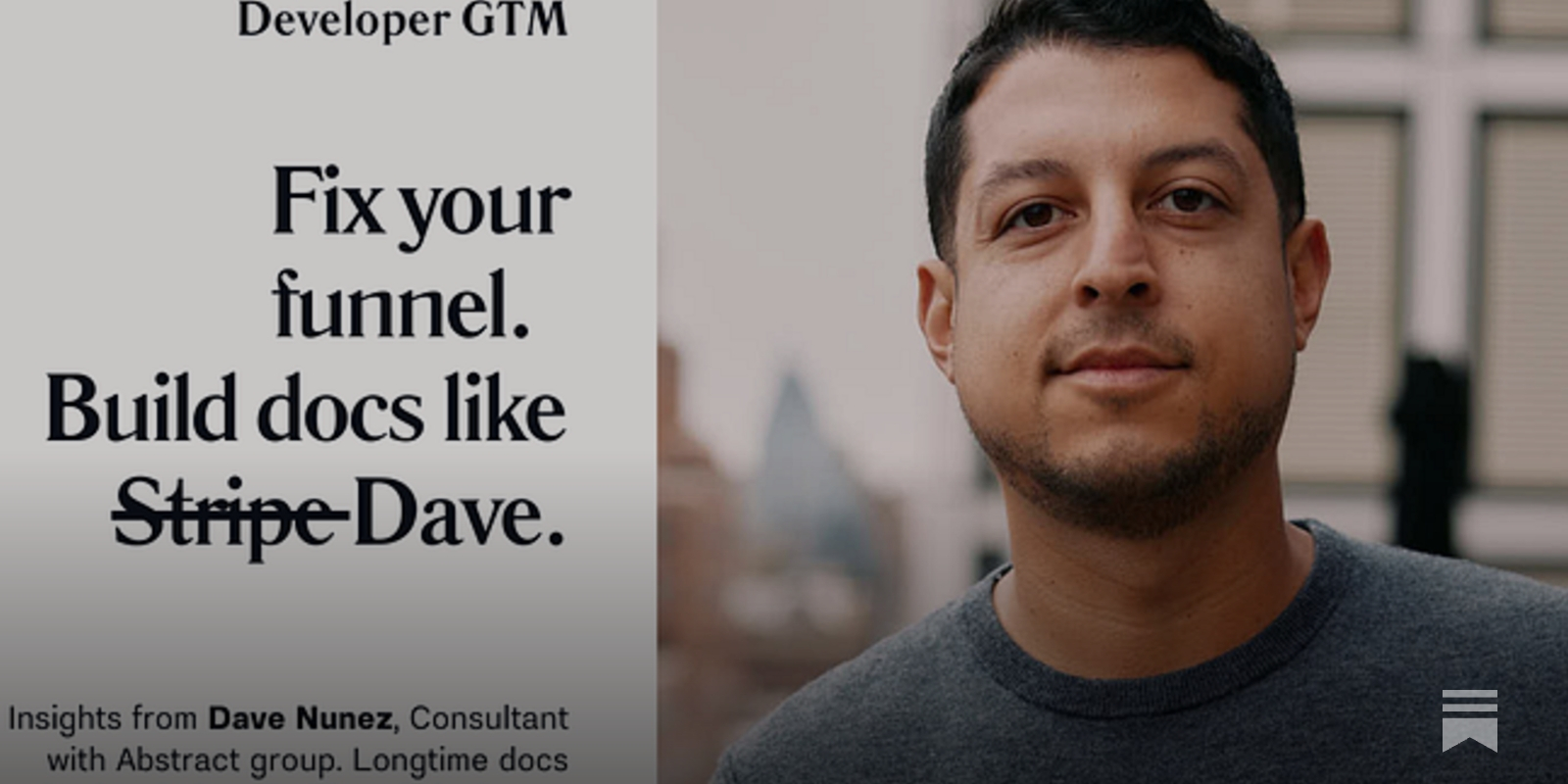 Mediocre docs are sabotaging your growth. Fix your docs (and your funnel) with insights from Dave Nunez, a leading expert in developer education.