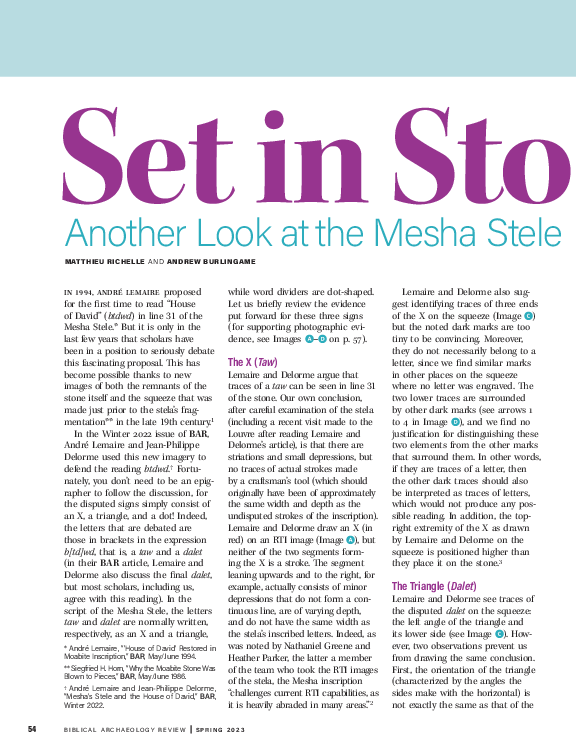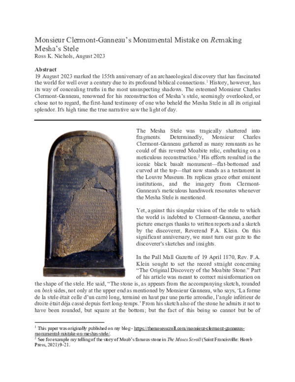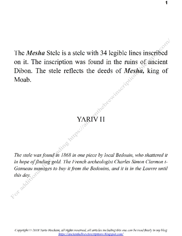 Keywords Mesha Stele, Mesha, Moab, Beth David, Balak, Horonaim, Horon The bottom part of the Mesha Stele, which includes Line 31, is broken (Fig. 1). About ...