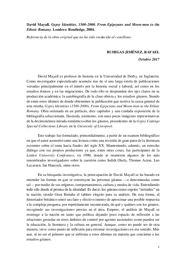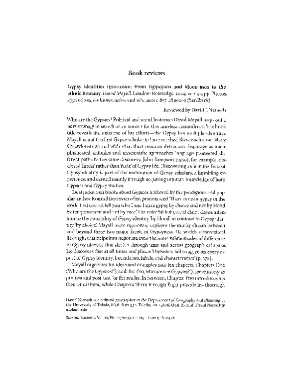 Gypsy Identities 1500-2000 From Egipcyans and Moon-men to the Ethnic Romany. By David Mayall Copyright 2004 ... So, who are the Gypsies? Author(s). Biography.