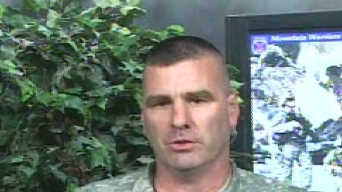 Army Col. David Paschal, Commander, 1st Brigade Combat Team, 10th Mountain Division and Fort Drum, NY, speaks to a group of 944th Fighter Wing members.