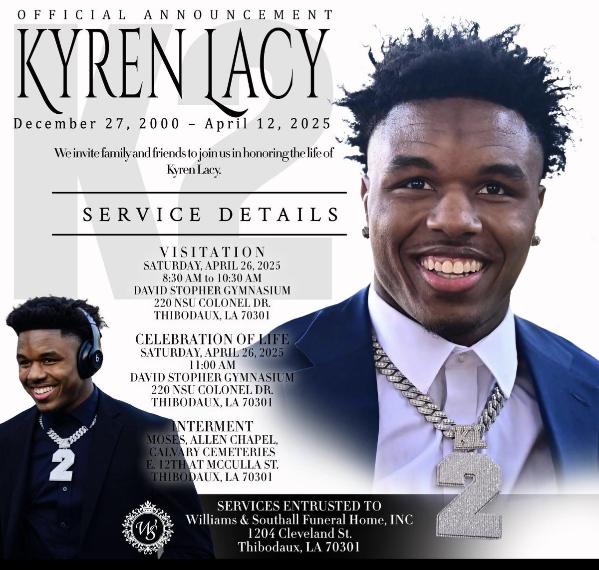 Funeral Services for Former UL, LSU Football Player Kyren Lacy Set for Saturday, April 26