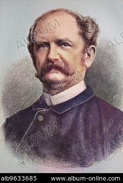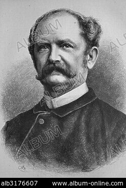 Portrait of Daniel David Veth. Born 17 February 1850 in Amsterdam, The Netherlands. Died 19 May 1885 in Angola. Wood engraving by Auguste Tilly (1840-1898), ...