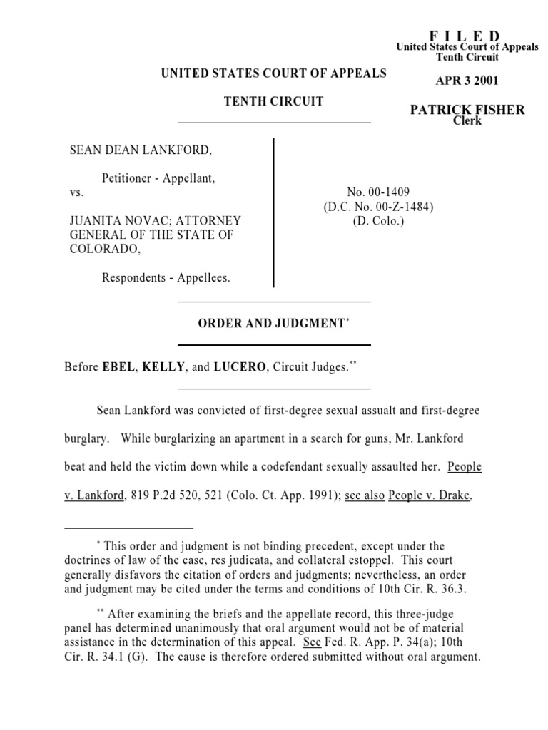 The defendant, Sean Dean Lankford, appeals from a judgment of conviction entered upon a jury verdict finding him guilty of first degree sexual assault and first ...