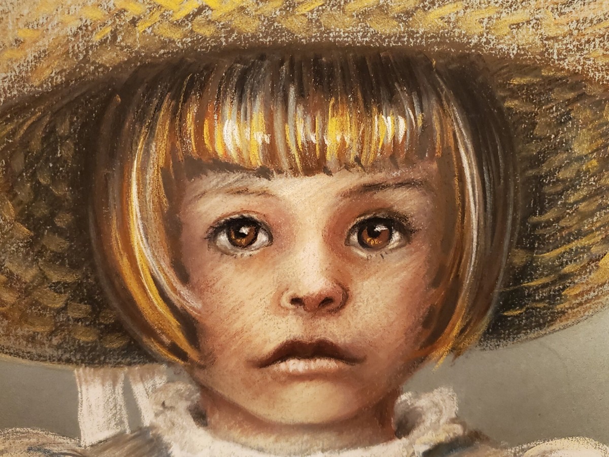 Deborah Debbie Prager Original Pastel Drawing Girl in a Straw ...