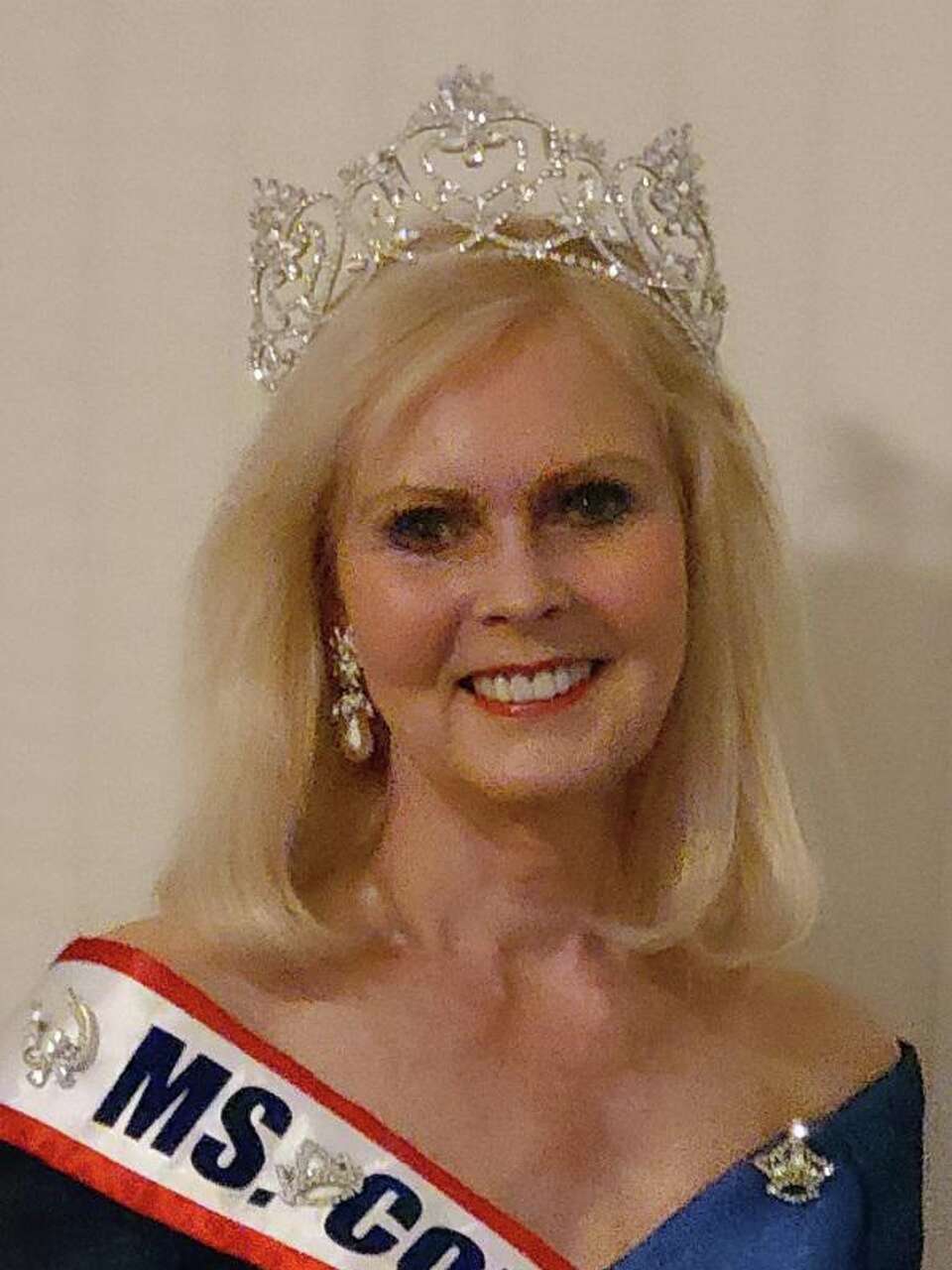 Debra Eccles, still beautiful at 70, wears a crown and sash when she makes public appearances as “Ms. Connecticut Senior America 2021.”