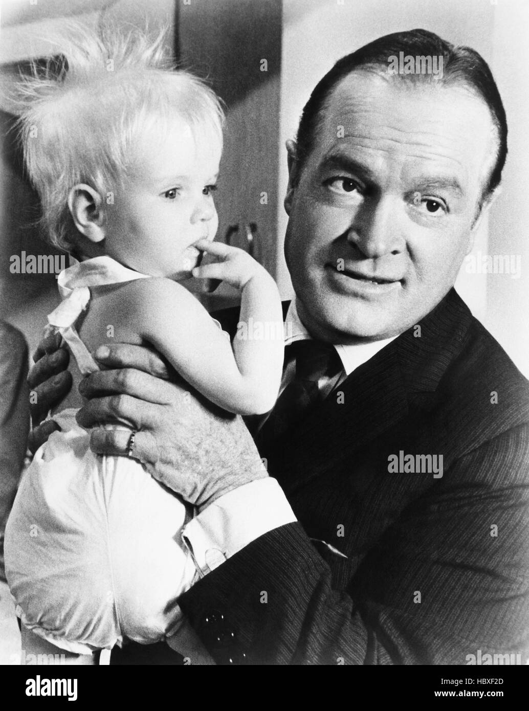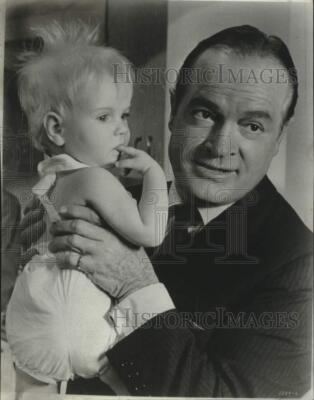 This is an original press photo. Bob and Babe. Bob Hope and his youngest leading lady, 10-month-old Denise Monroe, in "A Global Affair.".