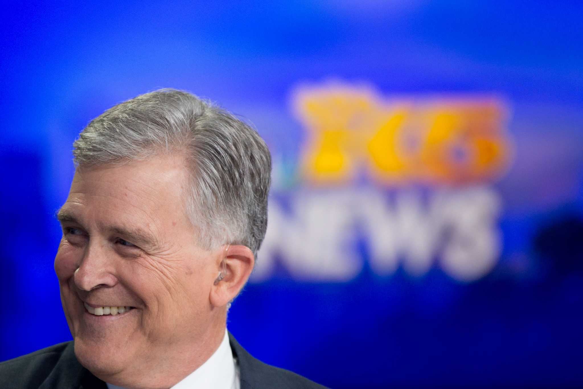KING/5 anchorman Dennis Bounds smiles before recording a quick spot teasing to the evening's stories on Friday, April 22, 2016. Bounds, a 25-year veteran of the station, went …