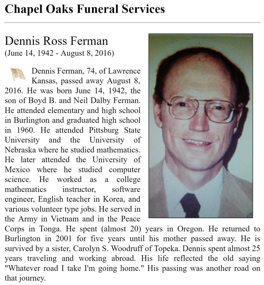 Dennis Gerald Boring Obituary 2016