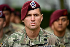 Interview with Fleet Master Chief Derrick Walters, fleet master chief of US Naval Forces Europe-Africa after a reenactment of the Naval Combat Demolition Unit ...