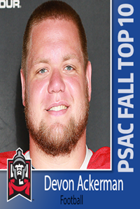 Devon Ackerman (74) OL - R-Senior (2017): Academic All-America 1st team, becoming the first 3-time 1st team selection (any sport) in school history .