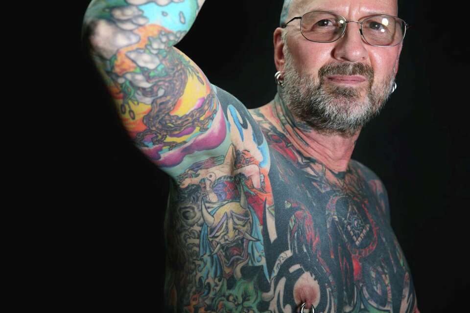 Devon Pettit poses for a portrait at the annual Seattle Tattoo Expo, Aug. 19 ...