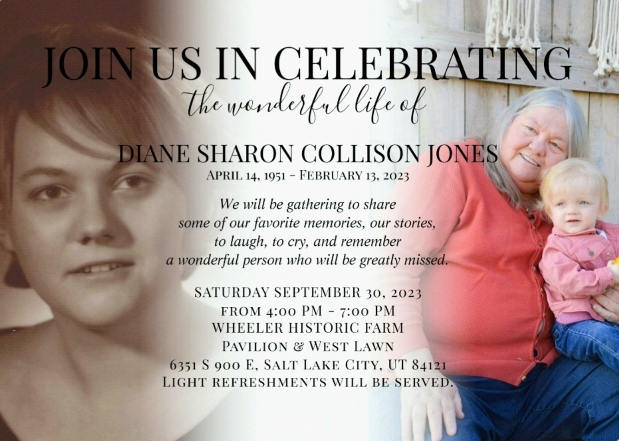 Diane is survived by her daughter, Amber Michelle Jones Waddoups (Tony), granddaughter Oakley Diane Collison Waddoups, former son-in-law ...