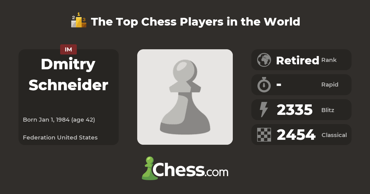 Learn everything about Dmitry Schneider. See their bio, world ranking, chess ratings, most played openings, recent games, and more!
