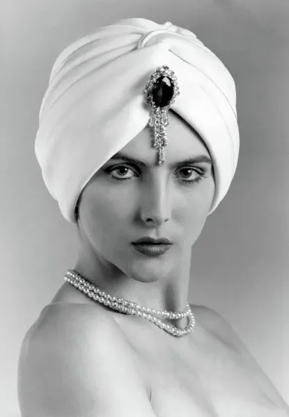 A 30s fashion enthusiast, Donna Dillingham, poses in vintage attire, circa March 1986. Art Prints, Posters and Puzzles from Memory Lane.
