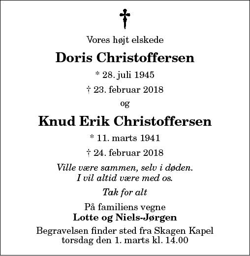 Doris Christoffersen. d. November 13, 2023. Doris "Dory"" Christoffersen, nee Greeder, passed away at home, ...