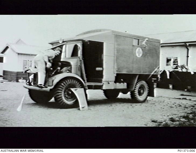 BATHURST, NSW. NF389009 DRIVER DOROTHY PASCOE (AWAS) SERVICING HER AUSTIN 2 TON AMBULANCE AT THE DEPOT OF NO. 3 PLATOON, 2ND AUSTRALIAN AMBULANCE CAR ...
