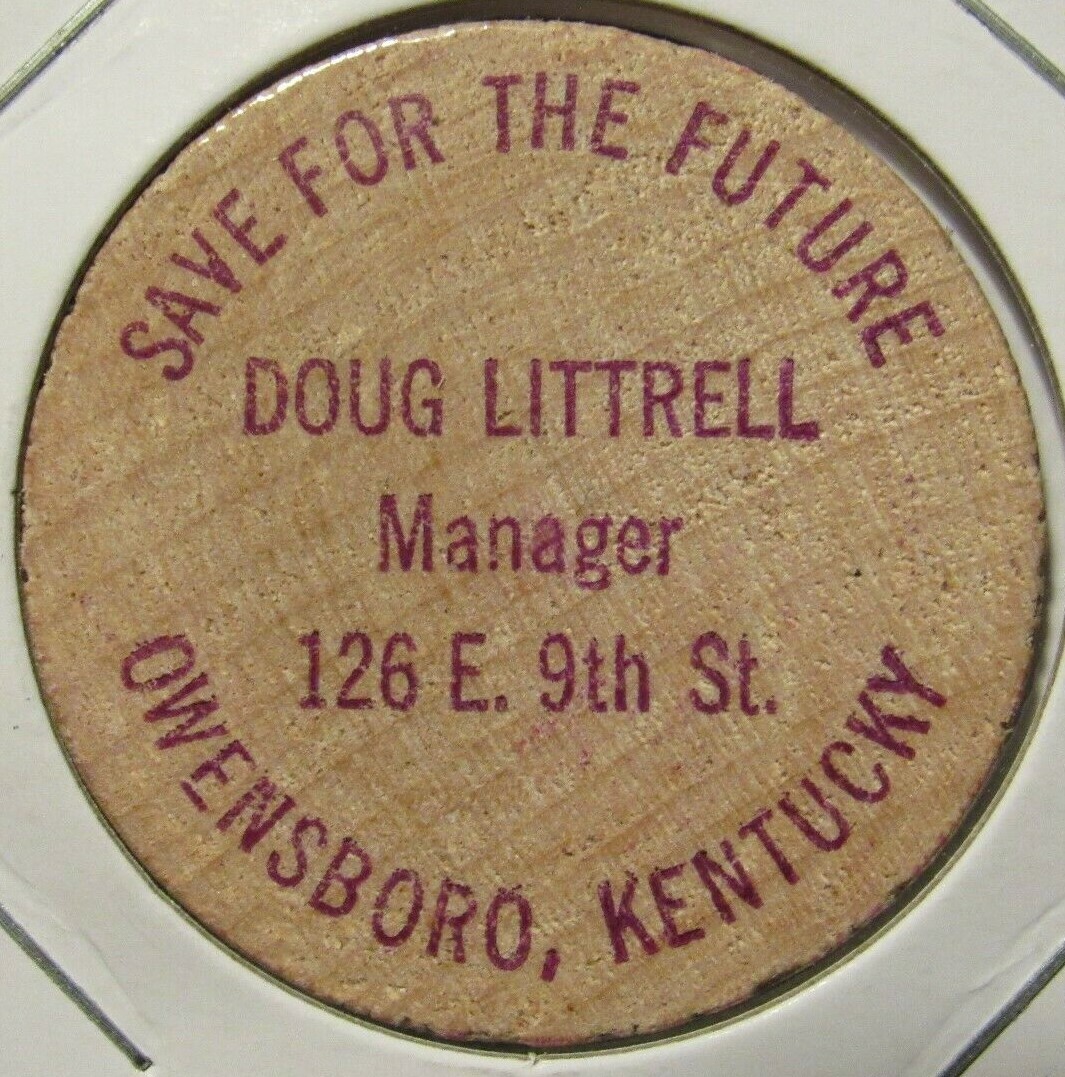 Vintage Doug Littrell Owensboro, KY Wooden Nickel - Token Kentucky ; Quantity. 7 available ; Item number. 374702971493 ; Est. delivery. Thu, Mar 13 - Mon, Mar 17.