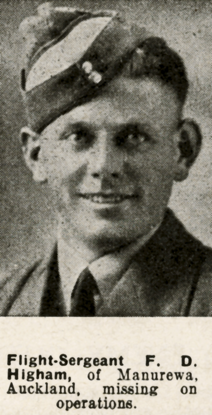 Flight Sergeant FRANK DOUGLAS HIGHAM. Service Number: 416116. Regiment & Unit/Ship. Royal New Zealand Air Force. 75 (R.A.F.) Sqdn. Date of Death. Died 28 August ...