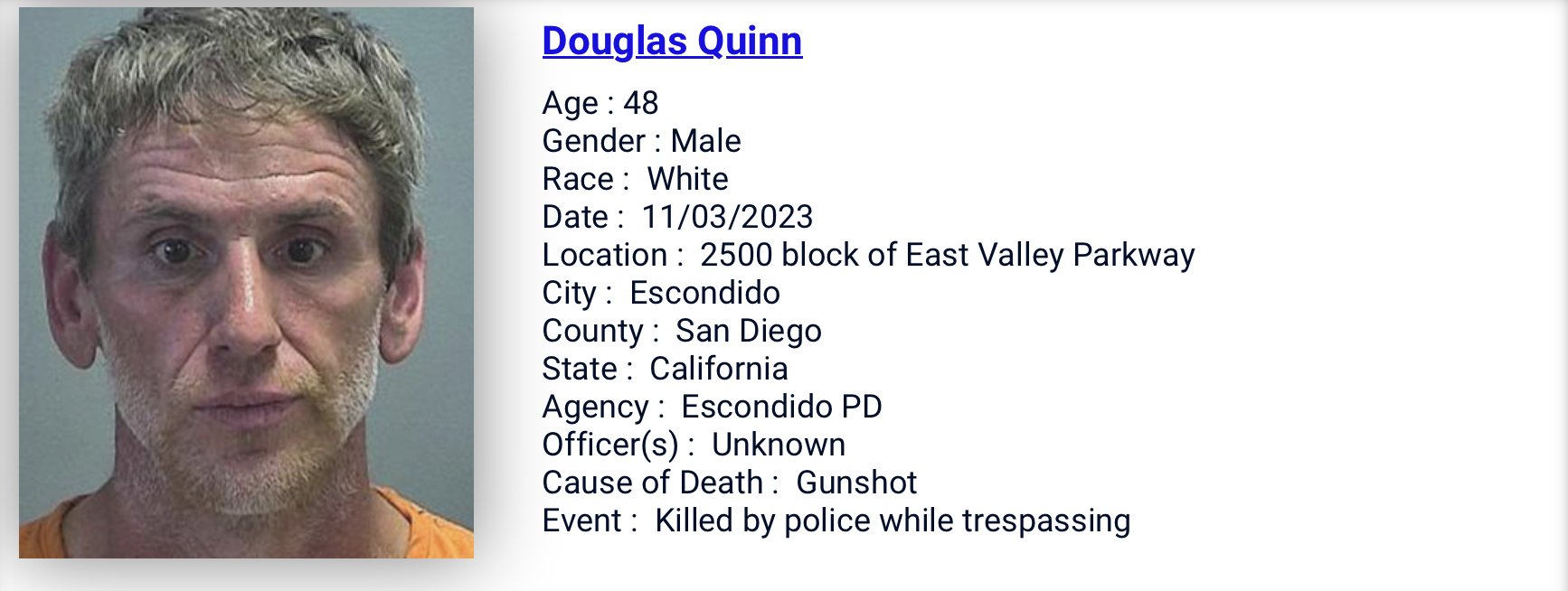 Parolee Shot by Escondido Police Identified As Douglas Quinn, 48 ...