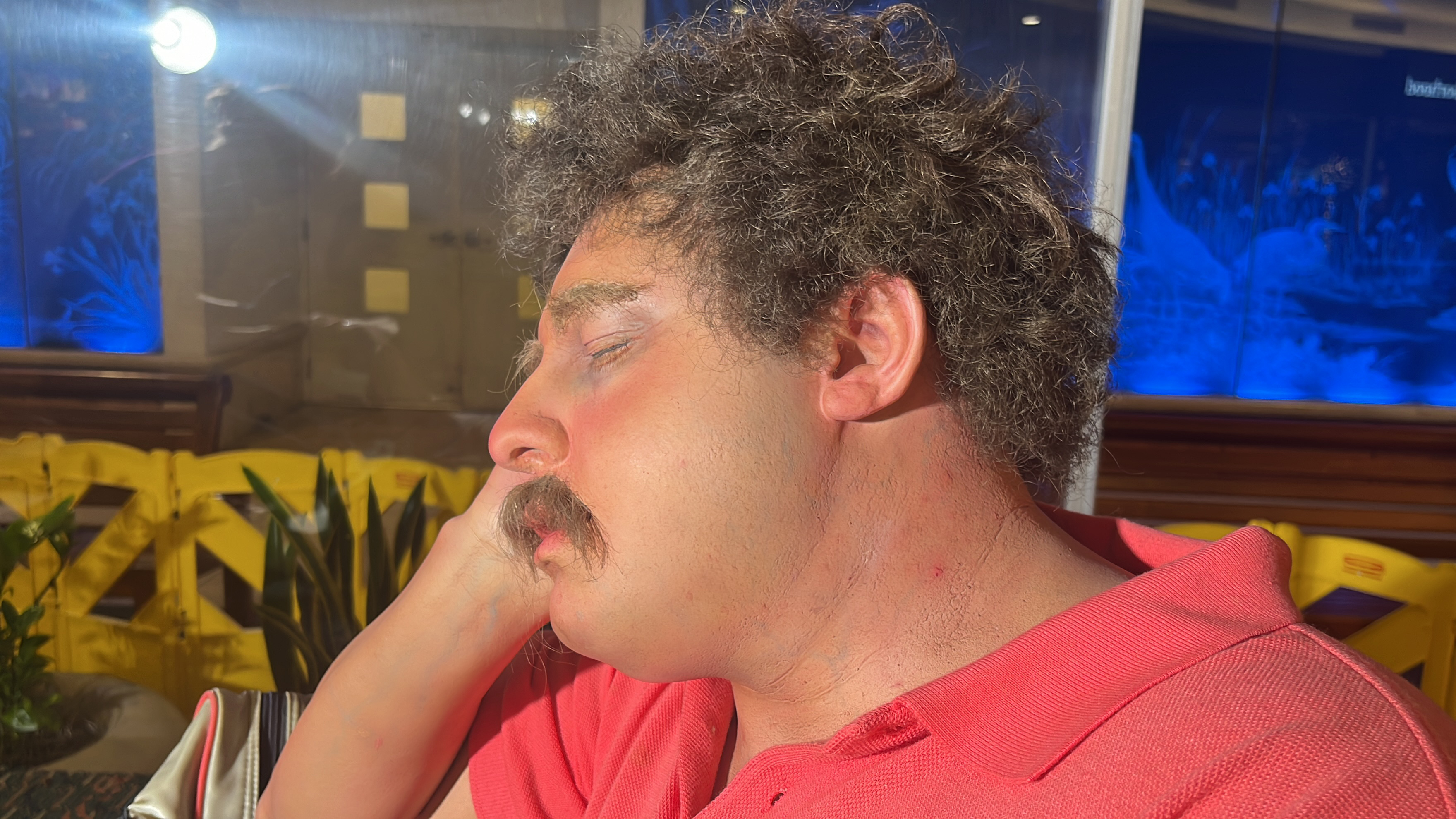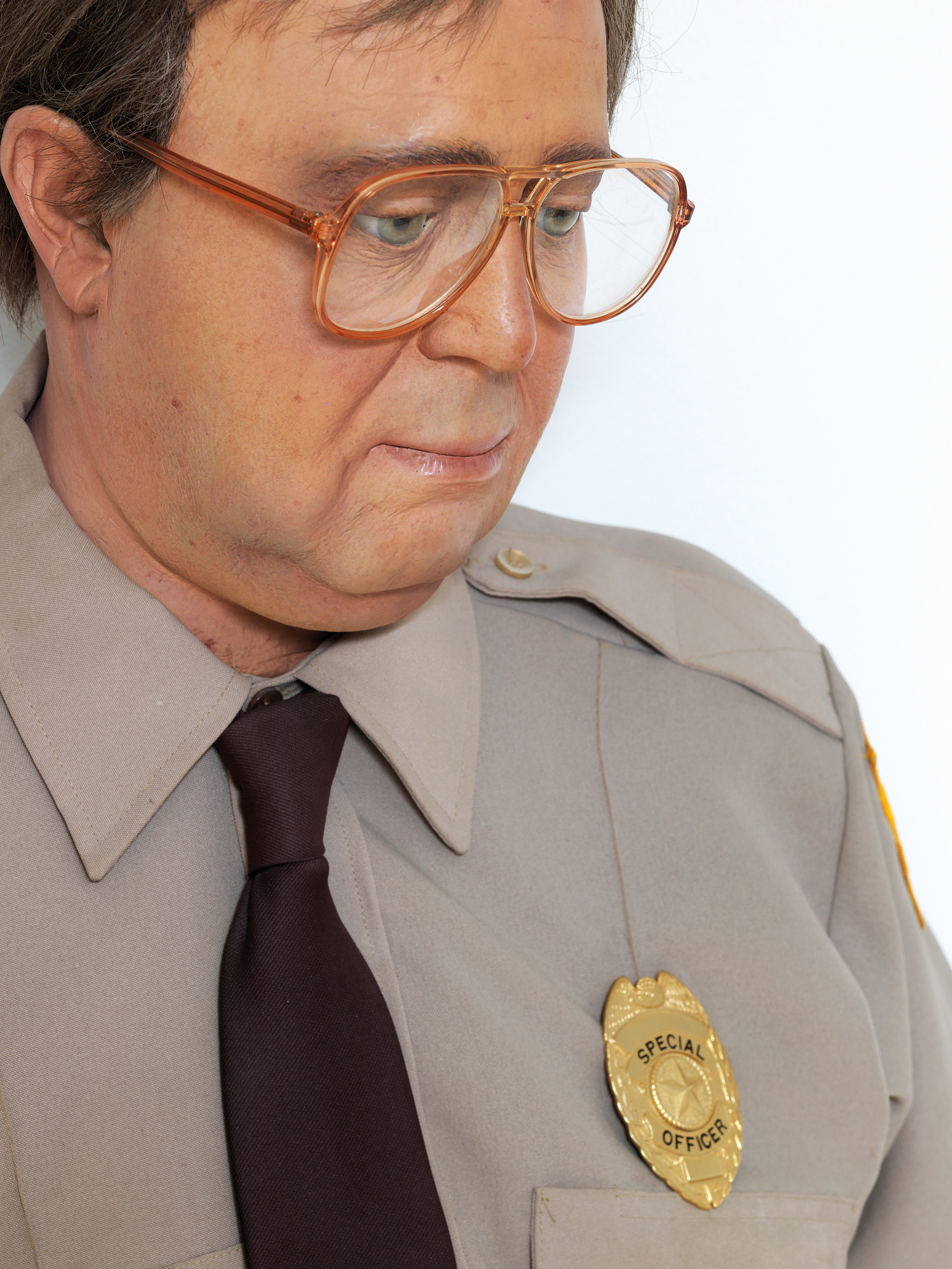 There is a Duane Hanson piece at the Nelson-Atkins museum in Kansas City. The sculpture looks like an old man security guard. The only real tip ...